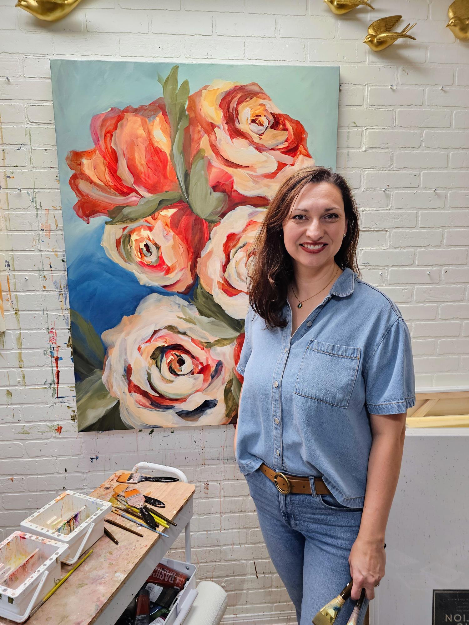 Growing up in The Woodlands area, I am a proud Texan. I find joy in expressing the beauty of nature and creation through my abstract impressionist floral art. My hope is that each brushstroke brings vibrant life to every environment. I’m happily married to my best friend, Jon, and together, we share a beautiful life with our two amazing children and a cherished granddaughter. Â