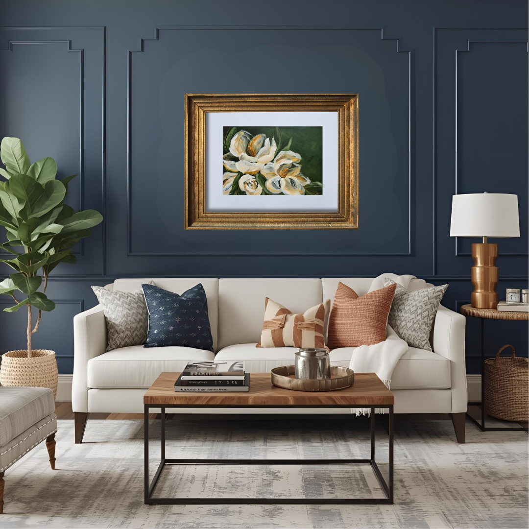 Elevate your space with a stunning floral print that is paired with white acid-free mat that enhances its beauty