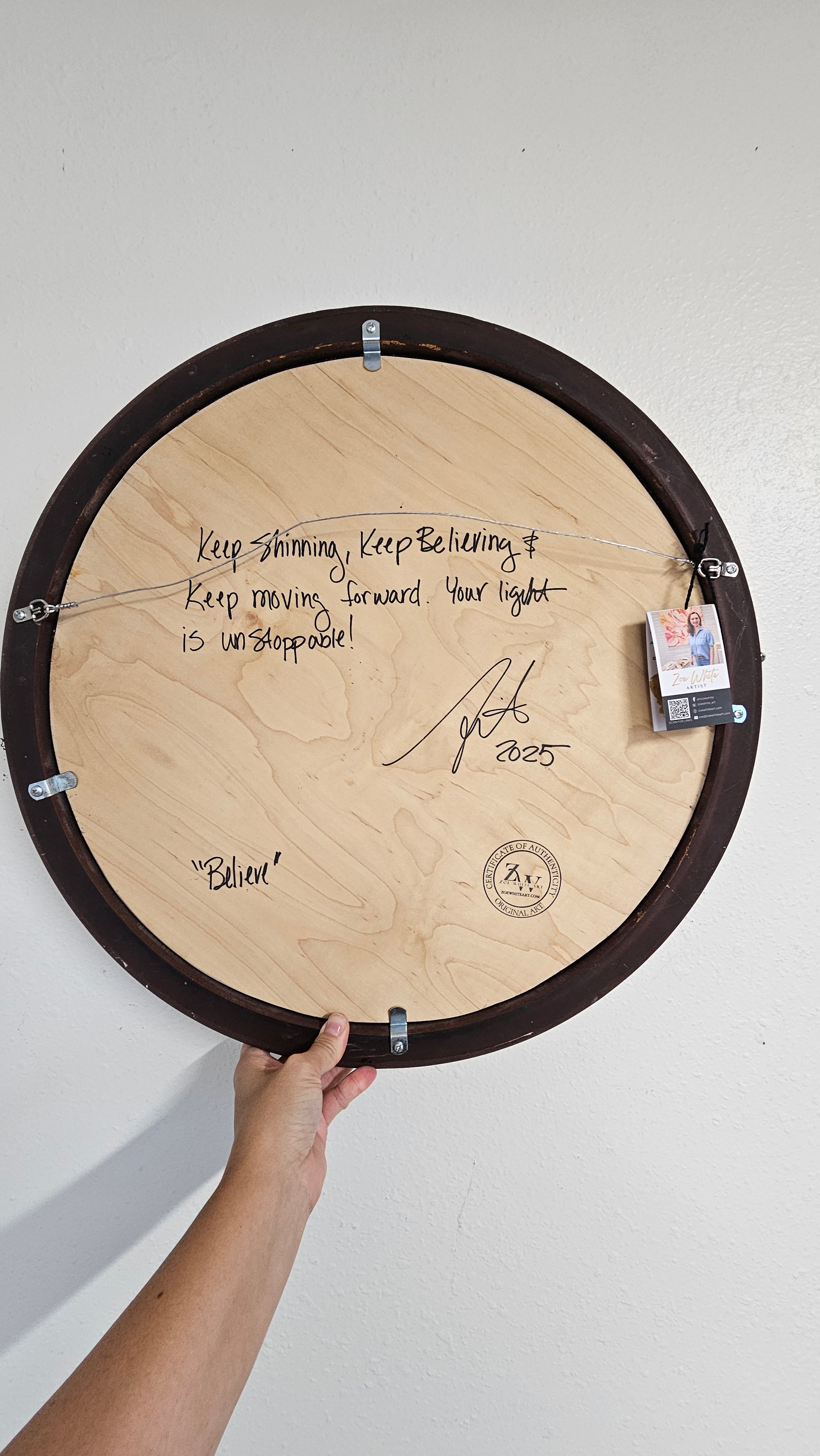 - Special Message: I love to personalize all my paintings with a special message. On the back of this painting, I've written: "Keep shinning, keep believing & keep moving forward. Your light is unstoppable!"