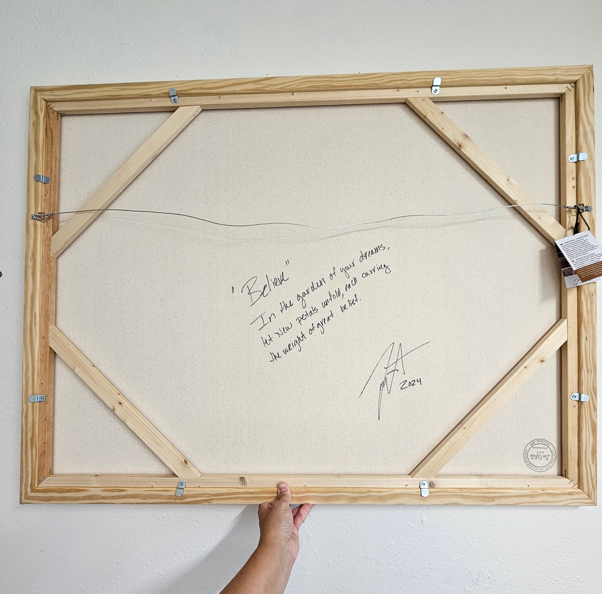 - Special Message: I love to personalize all my paintings with a special message. On the back of this painting, I've written: "In the garden of your dreams let new petals unfold, each carrying the weight of great belief."