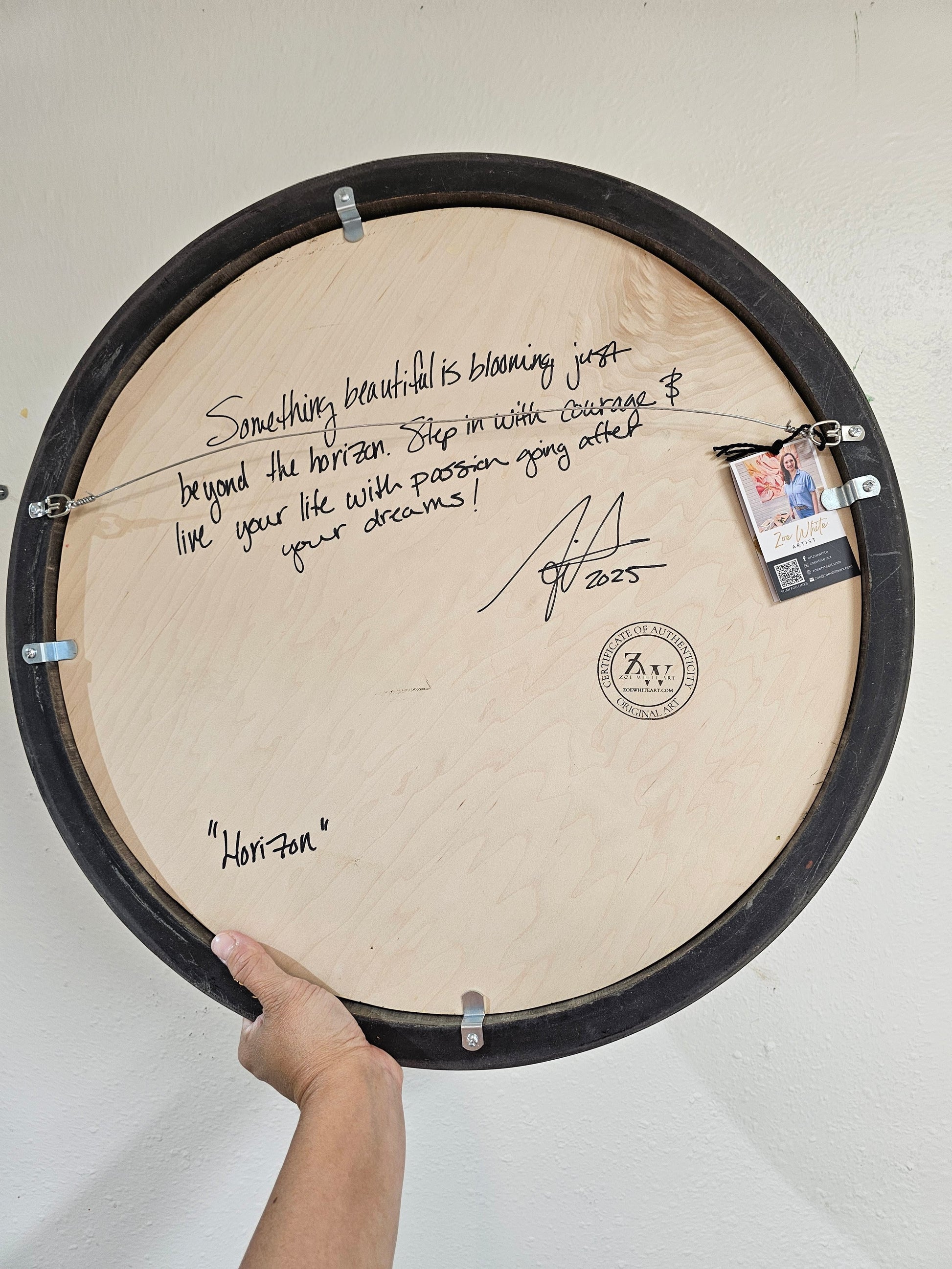 - Â Special Message:Â I love to personalize all my paintings with a special message. On the back of this painting, I've written: "Something beautiful is blooming just beyond the horizon. Step in with courage & live your life with passion going after your dreams! "Â