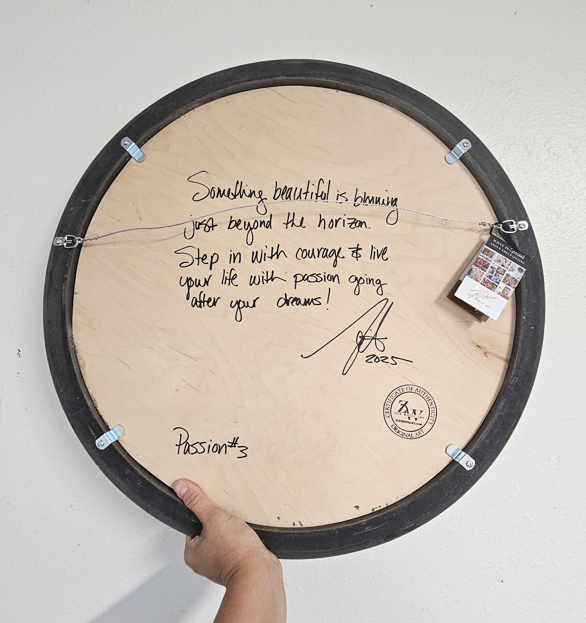 - Special Message: I love to personalize all my paintings with a special message. On the back of this painting, I've written: "Something beautiful is blooming just beyond the horizon. Step in with courage & live your life with passion going after your dreams! "