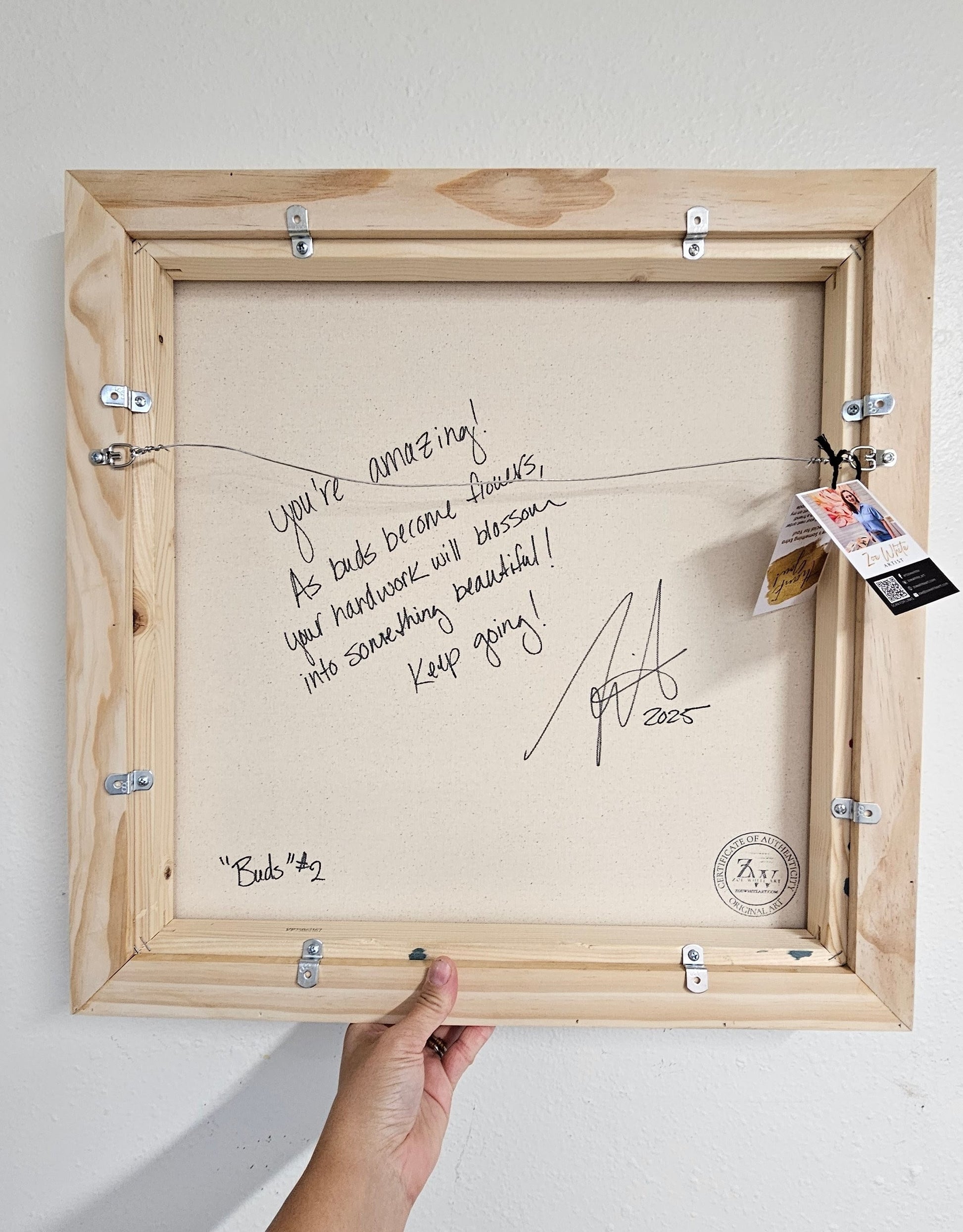 - Special Message: I love to personalize all my paintings with a special message. On the back of this painting, I've written: "You're amazing! As buds become flowers, your hard work will blossom into something beautiful! Keep going!"