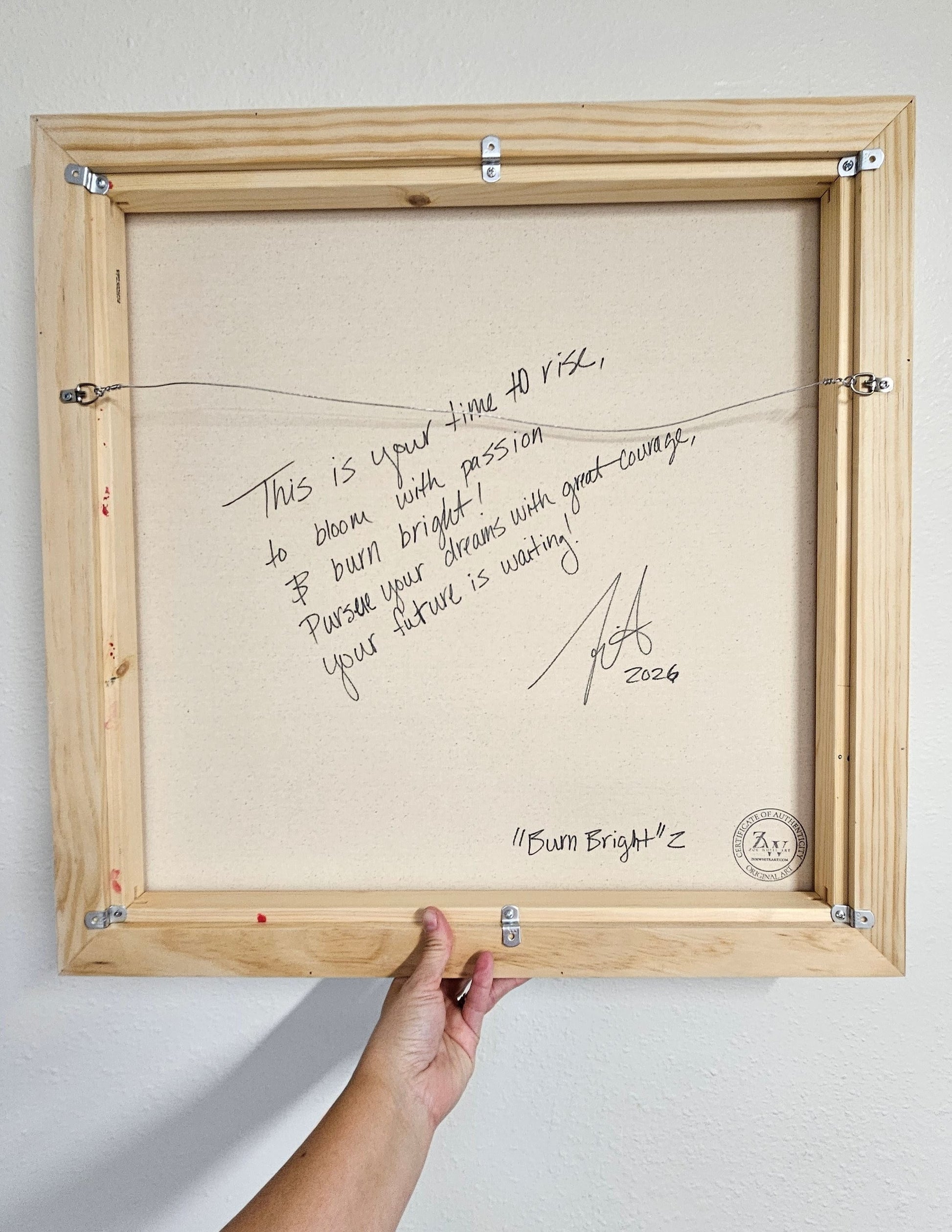 - Special Message: I love to personalize all my paintings with a special message. On the back of this painting, I've written: "This is your time to rise, to bloom with passion & burn bright! Pursue your dreams with great courage, your future is waiting!"