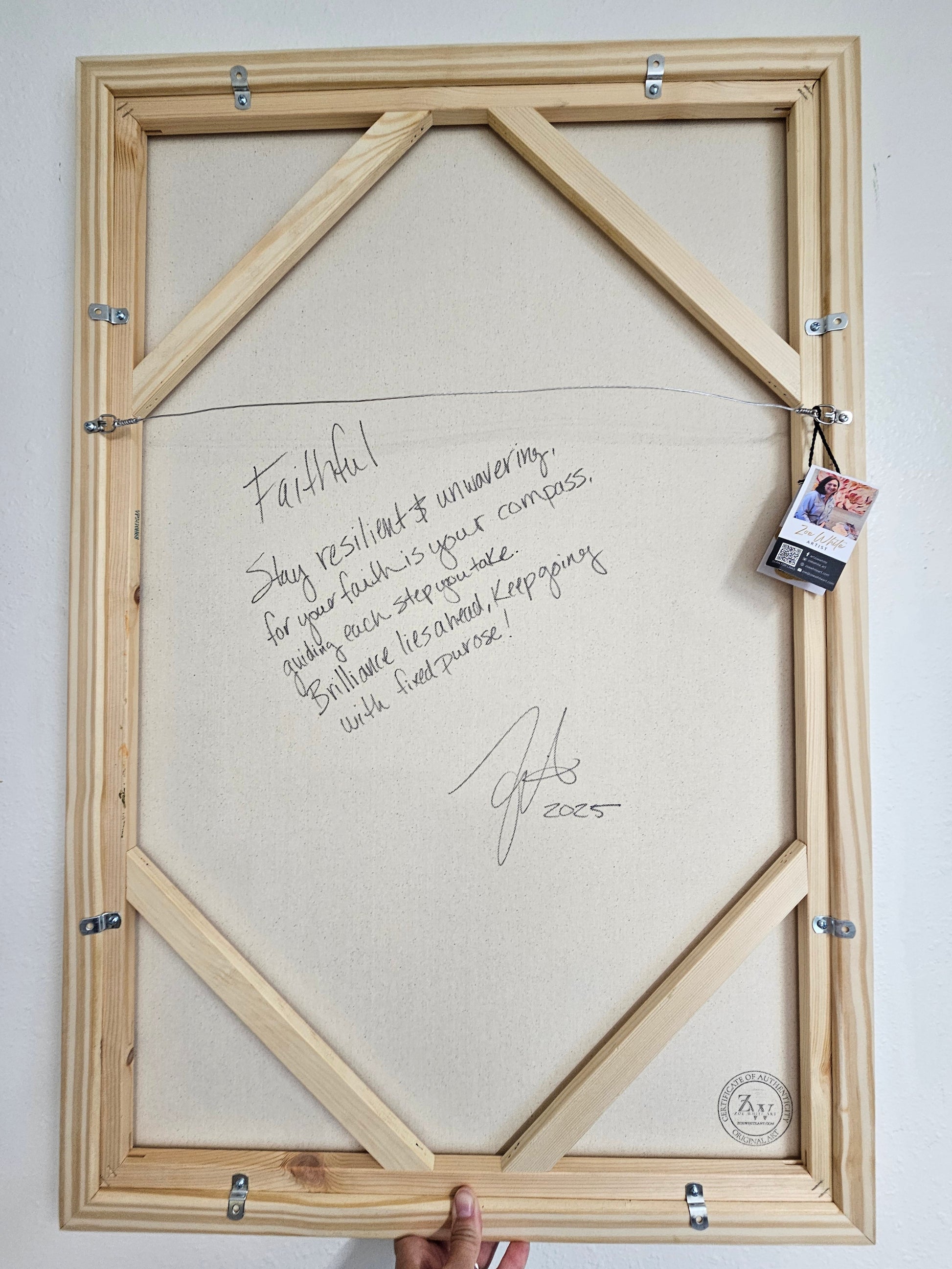 - Special Message: I love to personalize all my paintings with a special message. On the back of this painting, I've written: "Stay resilient & unwavering, for your faith is your compass, guiding each step you take. Brilliance lies ahead, keep going with fixed purpose."