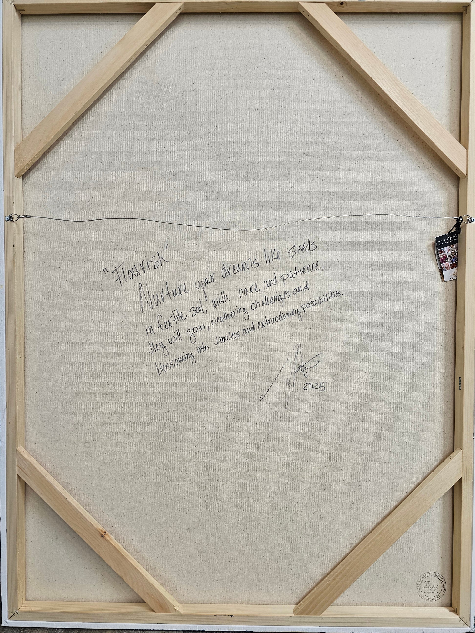 - Special Message: I love to personalize all my paintings with a special message. On the back of this painting, I've written: "Nurture your dreams like seeds in fertile soil, with care and patience, they will grow, weathering challenges and blossoming into timeless and extraordinary possibilities.