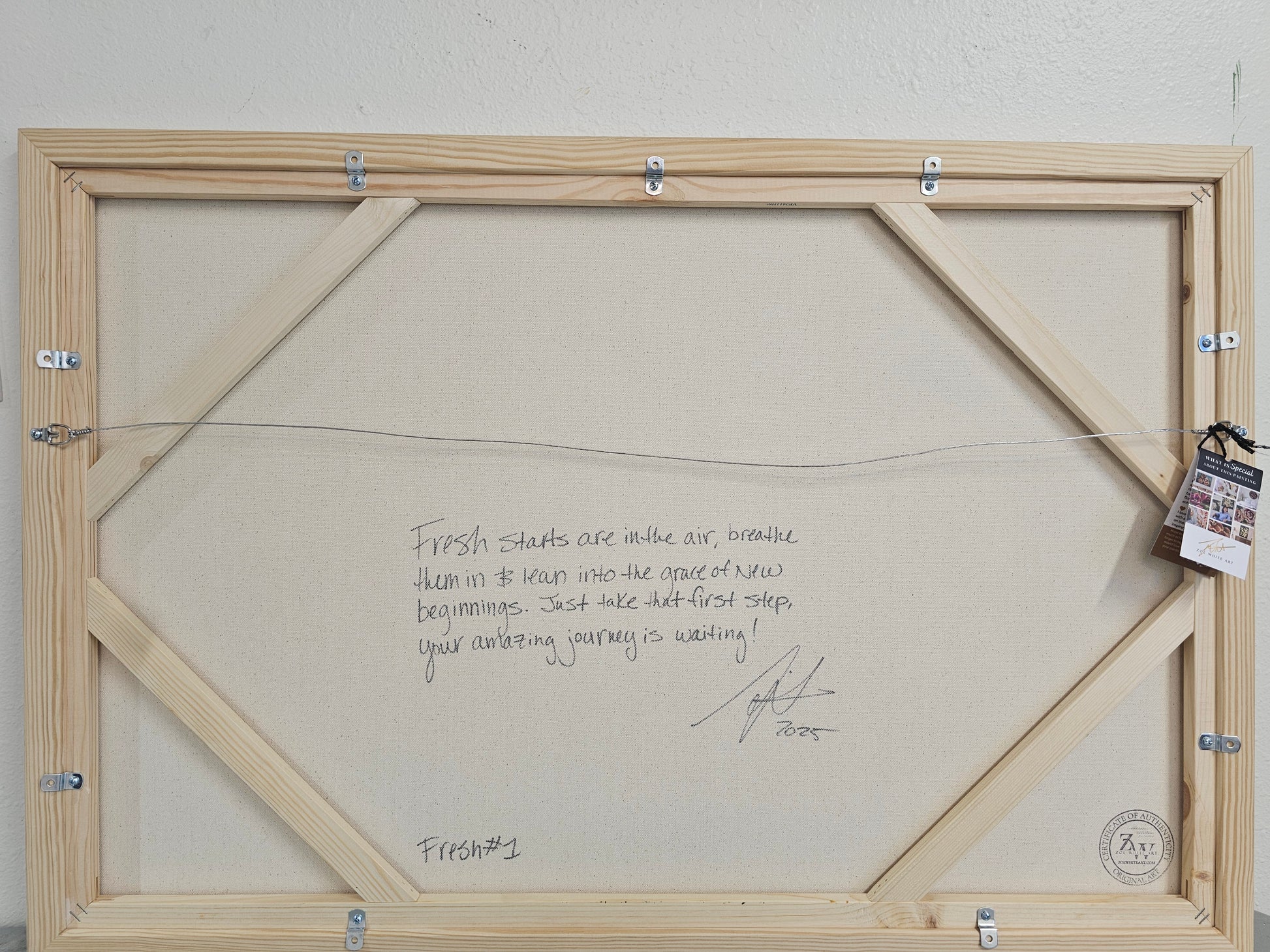 - Â Special Message:Â I love to personalize all my paintings with a special message. On the back of this painting, I've written: "Fresh starts are in the air, breath them in & lean into the grace of new beginnings. Just take that first step, your amazing journey is waiting!"Â