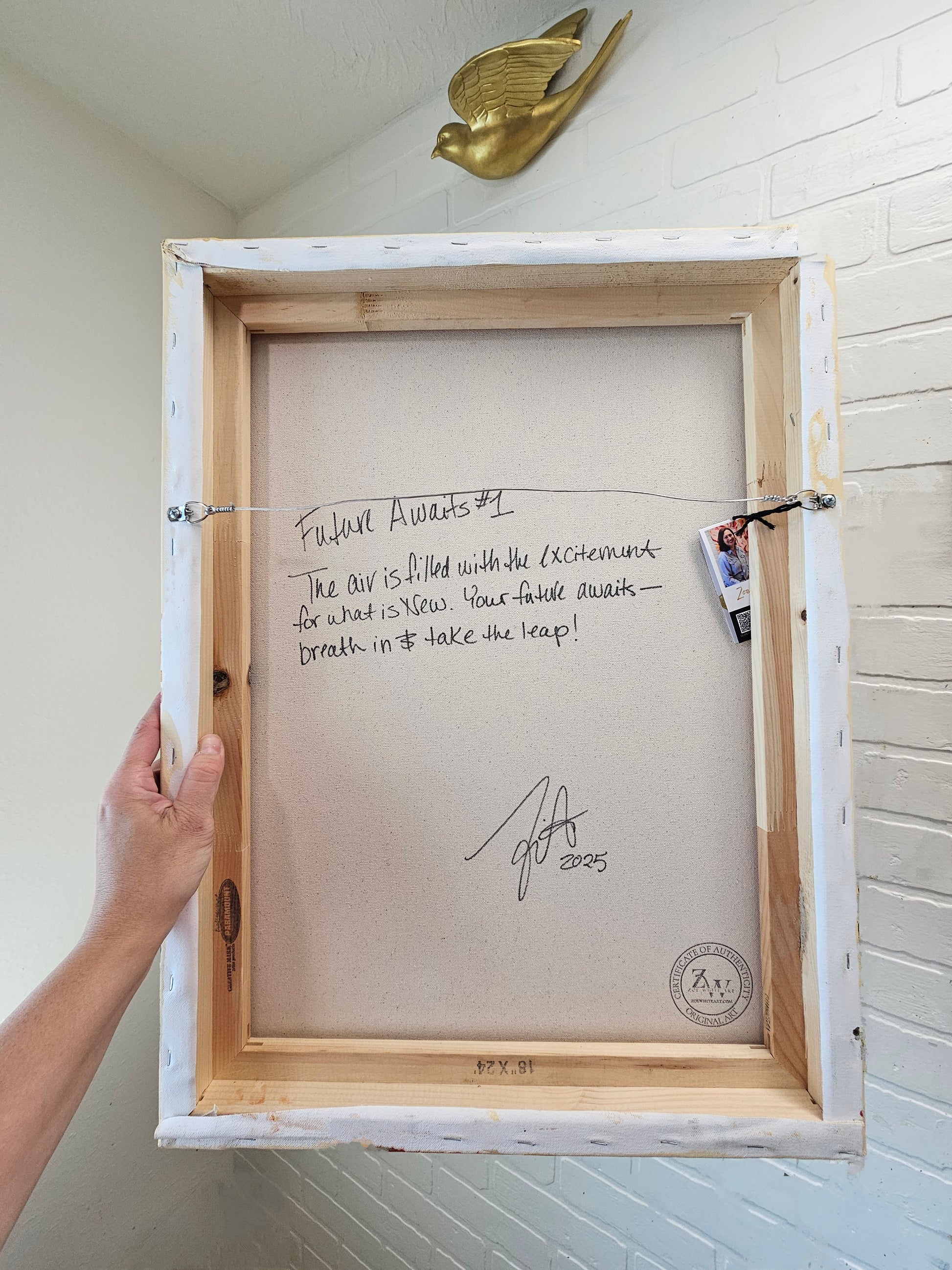 - Â Special Message:Â I love to personalize all my paintings with a special message. On the back of this painting, I've written: "The air is filled with the excitement for what is new. Your future awaits-breath in & take the leap."