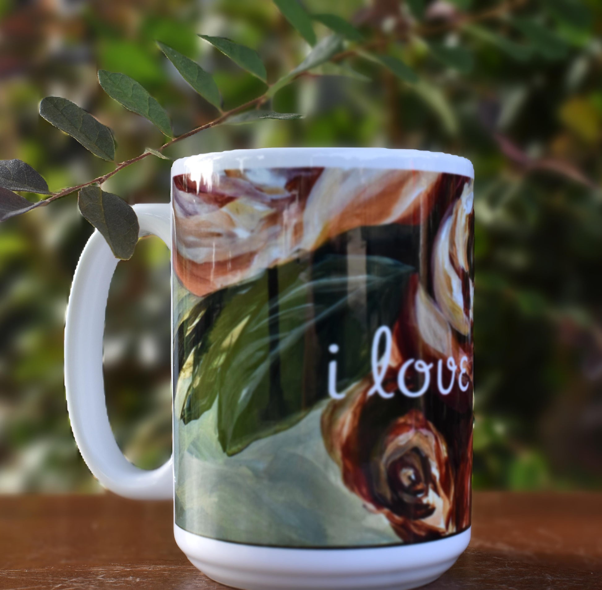 They will enjoy a coffee, tea, or a cozy cup of hot chocolate, this gorgeous rose flower mug is sure to make that special someone smile. With a sweet “I love you” message. The painting on the mug is high resolution copy of an original Zoe White painting.