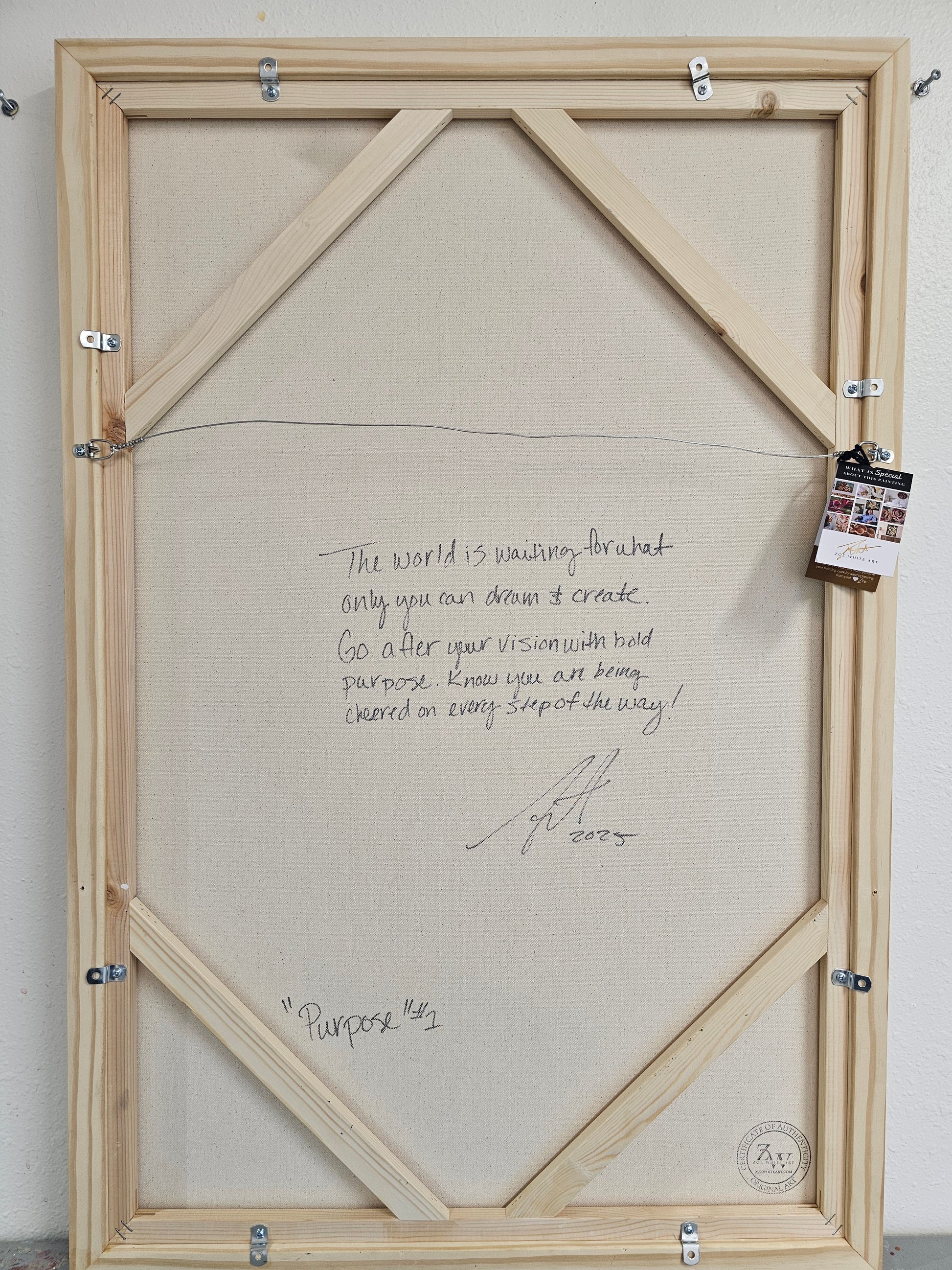 - Â Special Message:Â I love to personalize all my paintings with a special message. On the back of this painting, I've written: "The World is waiting for what only you can dream & create. Go after your vision with bold purpose. Know you are being cheered on every step of the way!"