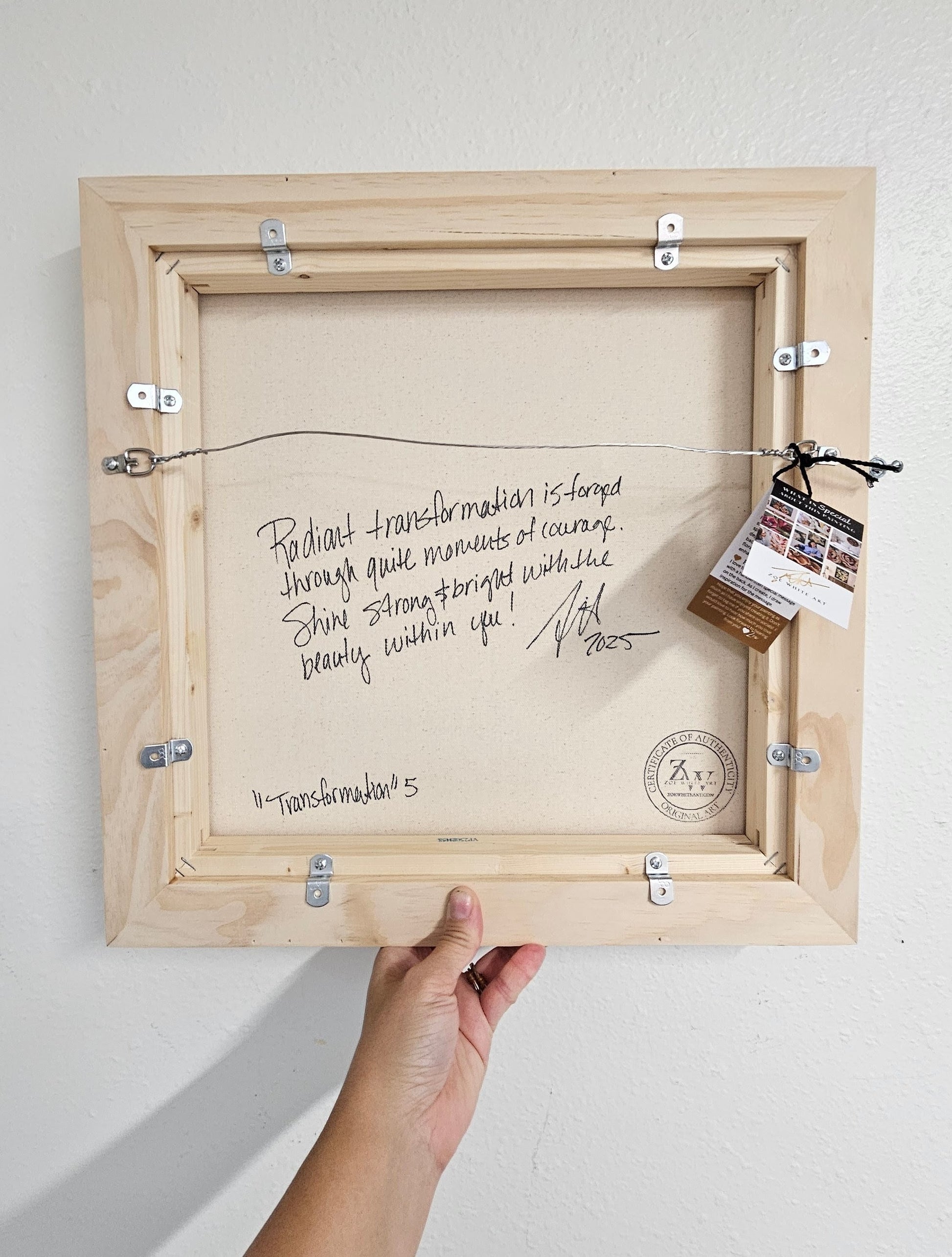 - Special Message: I love to personalize all my paintings with a special message. On the back of this painting, I've written: "Radiant transformation is forged through quite moments of courage. Shine strong & bright with the beauty within you!"