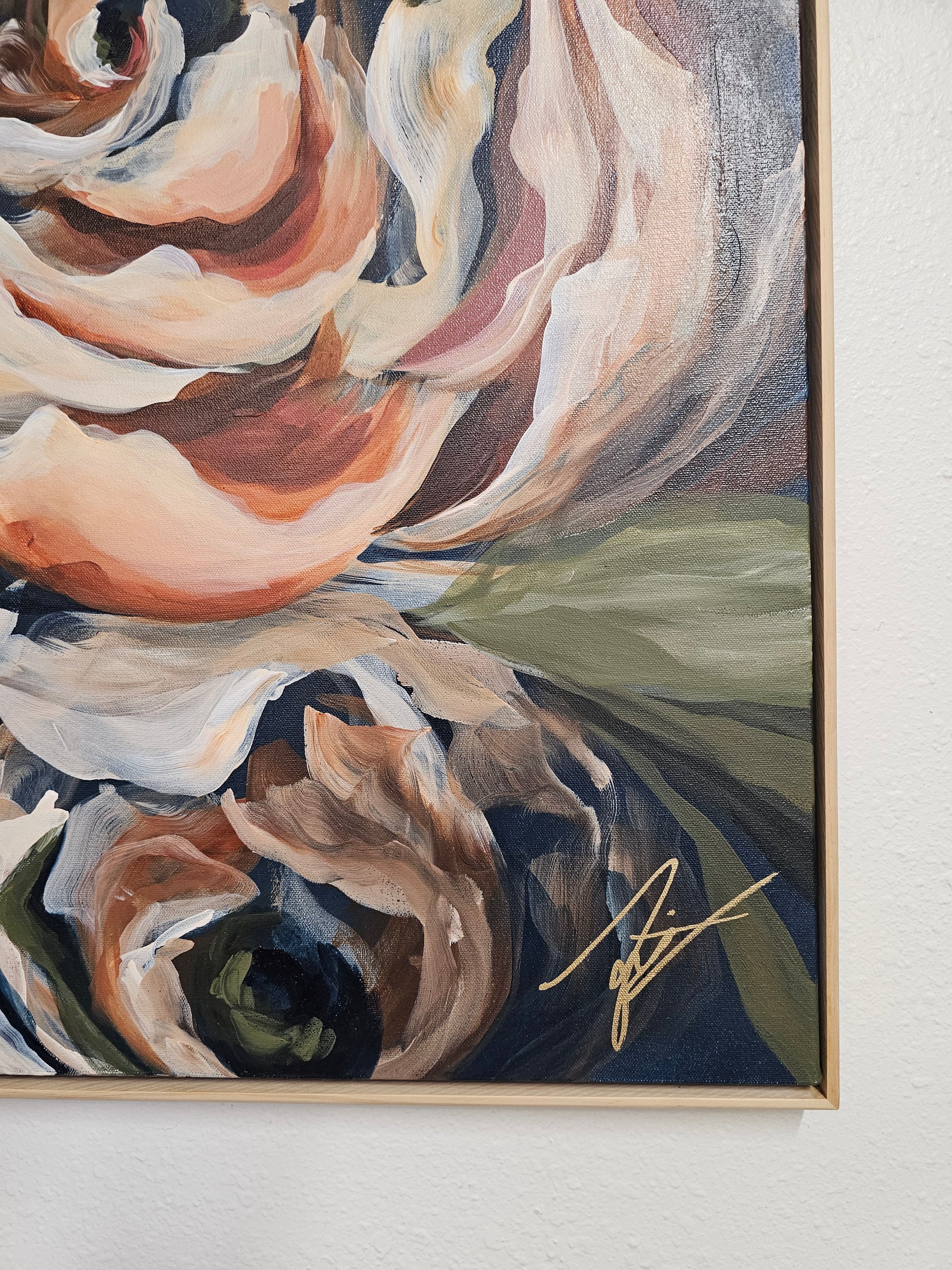 - My Creative Process: As I create my floral paintings, I draw inspiration from the various stages of a flower’s growth transformation. From the vivid and fresh hues during blossoming to the gradual shift toward deep & rich colors as they gracefully fade. Using acrylic paint as my preferred medium, I layer multiple colors to create depth and apply spontaneous brushstrokes to capture the essence of these beautiful moments.