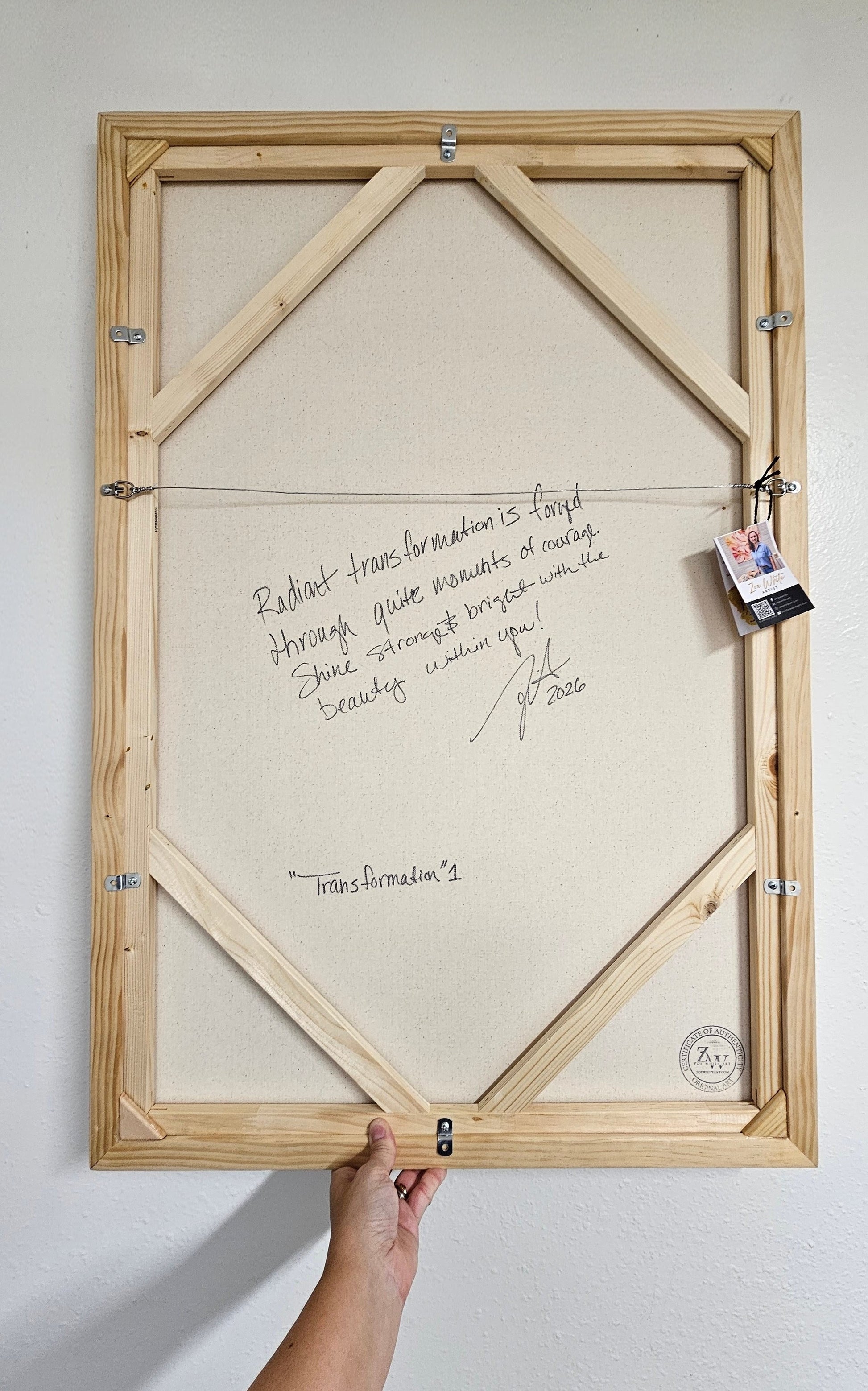 - Special Message: I love to personalize all my paintings with a special message. On the back of this painting, I've written: "Radiant transformation is forged through quite moments o courage. Shine strong & bright with the beauty within you!